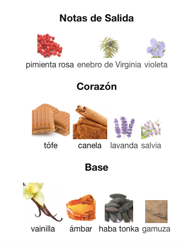 Fondo: vinilla, ambar, haba tonka, gamuza