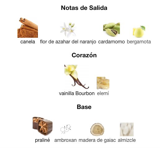 Salida: canela, flor de azahar del naranjo, cardamomo y bergamota