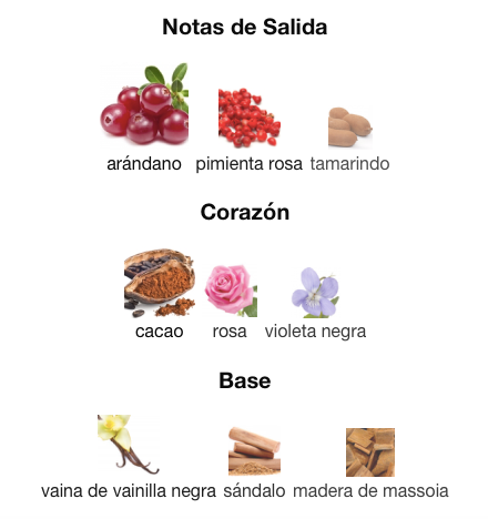 Notas de salida: Arándano, pimienta rosa, tamarindo
