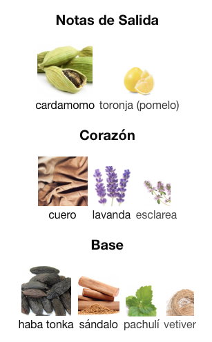 Notas de fondo: Haba tonka, sándalo, pachulí, vetiver